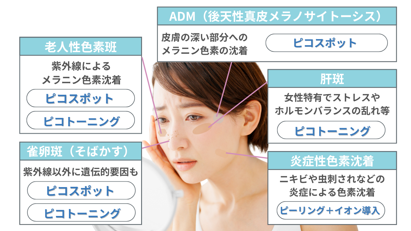 ピコスポットは、最新のピコ秒レーザー技術を用いた高精度なシミ治療です。